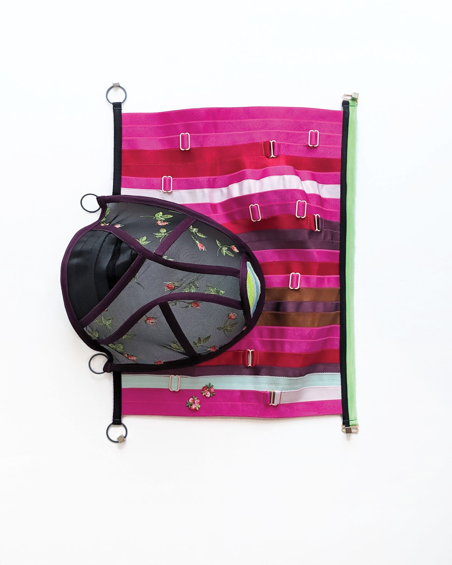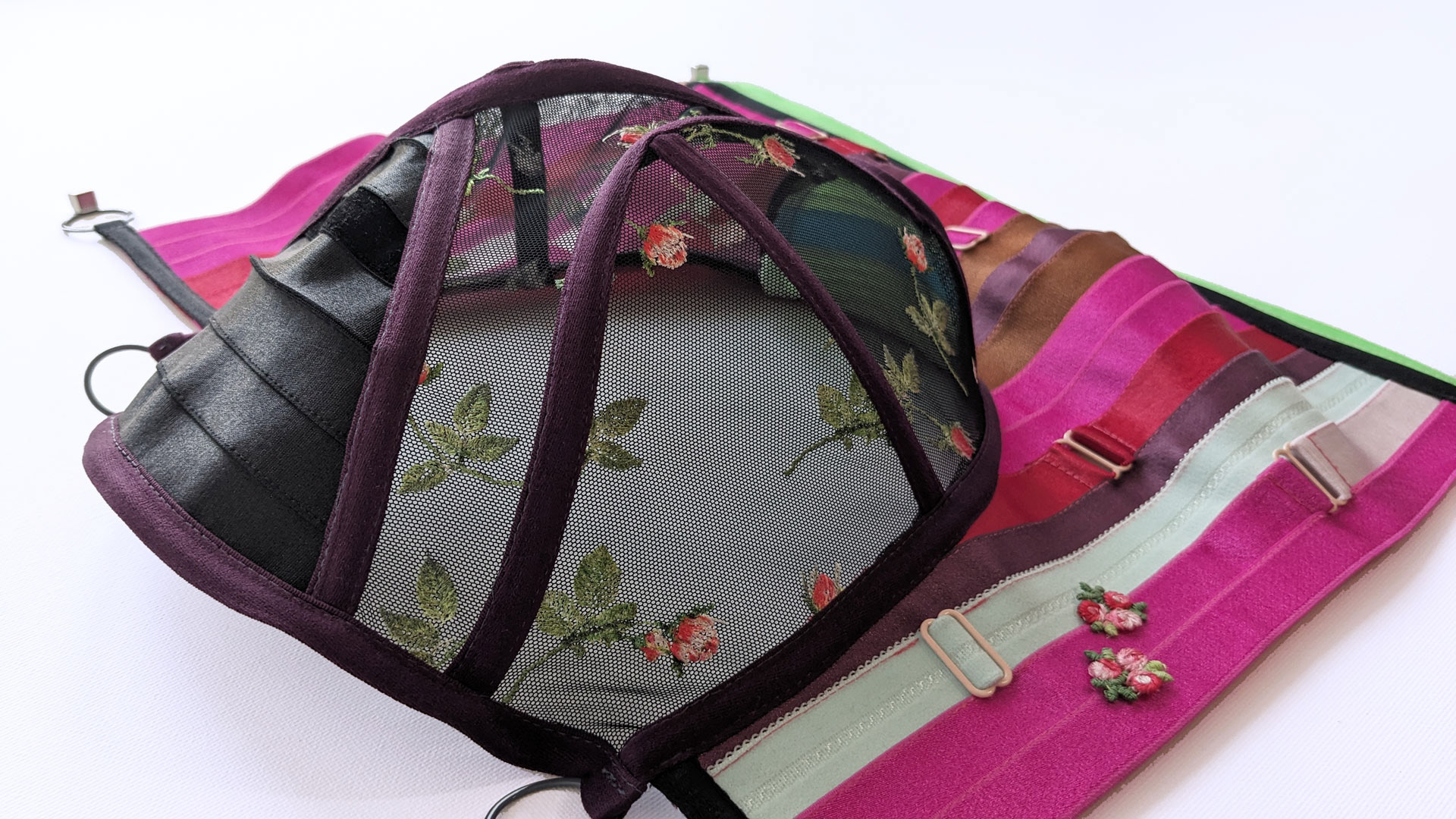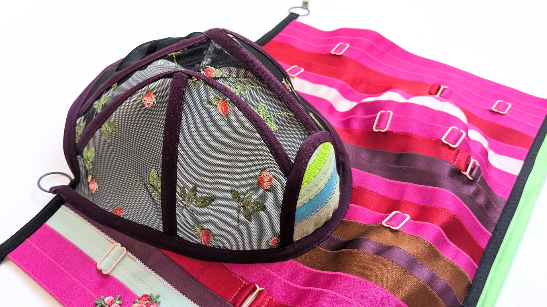 Bra strap elastic, embroidered tulle, channeling, rings and sliders, wire